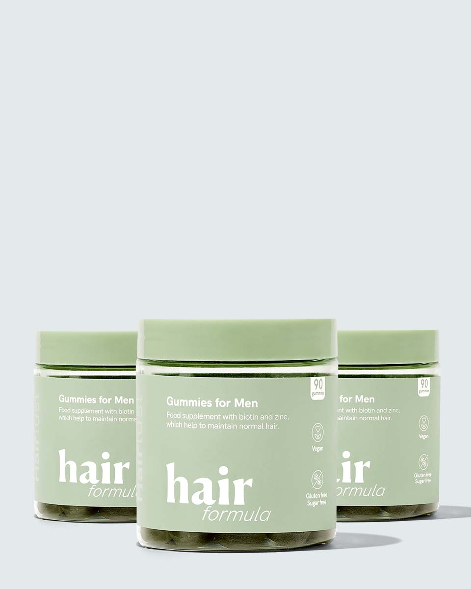 Hairlust Hair Formula Gummies Men er en lækker og smagfuld tygge vitamin mod hårtab hos mænd. Denne hårvitamin er udviklet specifikt for mænd og kommer i sukkerfri formel. Forebyg tyndt hår og hårtab hos mænd ved at pleje håret indefra med vitaminer til h